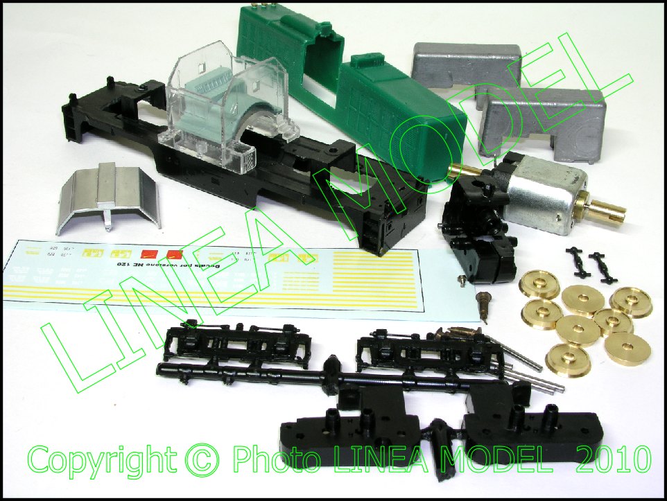 SCATOLA di Montaggio in Plastica e OTTONE - SCALA 1/87 - Made in ITALY Locomotore Elettrico FNM E 630 ( SKODA ) Modello MOTORIZZATO con 2 carrelli Motore LINEA MODEL Art. 19630 Modello con Caratteristiche tecniche come art.18630 ,ma completo di 2 carrelli motore LM art.19630 2 Carrelli MOTORE passo mm.36,7 progettati per essere inseriti, senza alcuna modifica al telaio in plastica del modello FNM E 630 , con BOCCOLA in tornitura per fissaggio carrello . Set composto da : 2 Carrelli Motori completo di vite senza fine , supporto e fissaggio con microviti .Carter inferiore completo di supporti per fiancate in plastica . Tutti gli Ingranaggi in darlin ruotanti montati su nuovi assi in acciaio inox , 4 assi motori con ingranaggi già calettati completi di 8 Ruote in Fresatura di ottone e 8 boccole fresate per assi ruote , 4 lamelle di contatto realizzate in rame berillio da 0,1 mm. ( captazione corrente su tutte le 4 ruote di ogni carrello motore ) complete di 2 Vetronite doppia faccia per isolare il carrello motore . Viti e dadi M1,4 per bloccaggio carter. Eccellente velocità minima e ECCEZIONALE forza di trazione con due carrelli motore. Velocità in scala 120 km/h |