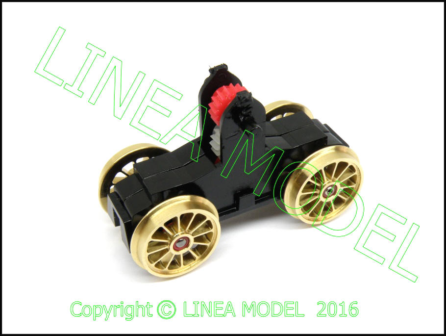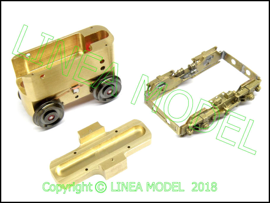 NUOVO Carrello Motore REALIZZATO In FRESATURA CNC completo di ingranaggi ROCO con NUOVO motore LINEA MODEL 10-12-20 , adatto per Elaborazioni TRAM o Elettromotrici RENON - Automotrici Bolzano , ecc. passo ruote mm.58,00 bogie FRAME complet and Motorized chassis BRASS with Motor 12 VOLT Kit SCATOLA di montaggio composto da : Carrello Motore FRESATO in ottone completo di MOTORE LINEA MODEL 10-12-20 completo di vite senza fine MODULO 03 e con cascata ingranaggi Modulo M03 Z27 , assi in acciaio INOX con godronatura per le 4 ruote , lamelle di contatto in rame berillio, piastrine in vetronite per fissaggio lamelle al telaio , 4 ruote in ottone diametro 11,60 mm. BRUNITE complete di boccole in derlin. Funzionamento silenziosissimo con eccellente velocità minima Eccellente velocità minima a passo d'uomo con Velocità max in scala 60 km/h |